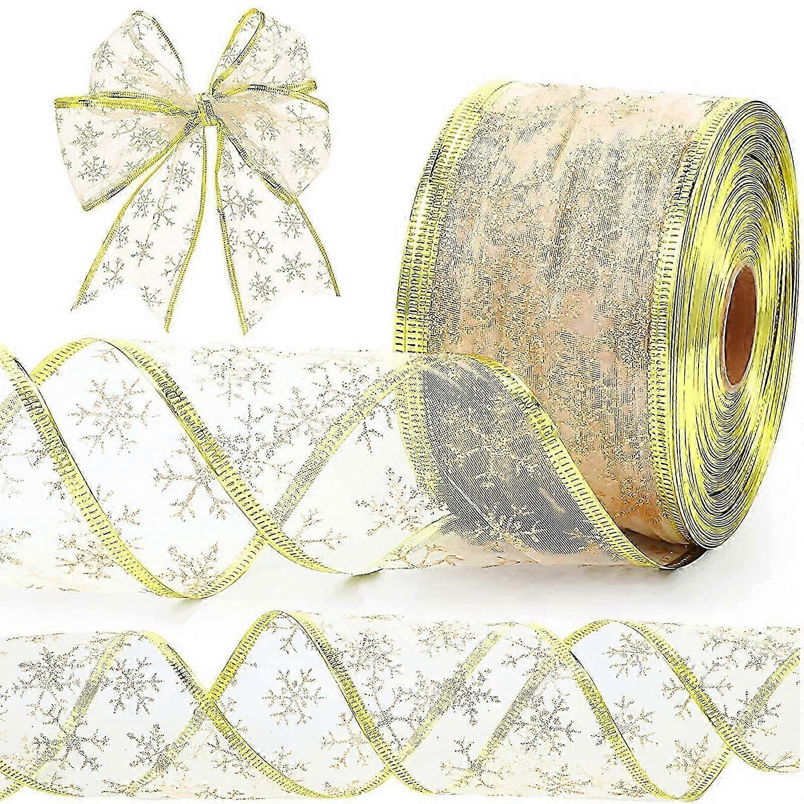 Christmas Tree Ribbon, 2.5 Inch x 10 Yards Organza Glitter Snowflake Christmas Ribbon with Spool, Wired Ribbon for Christmas Decoration, Gift Wrapping