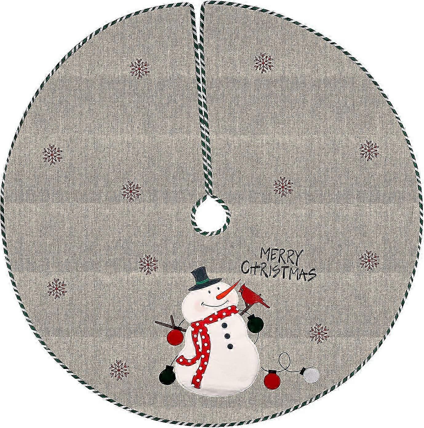 Christmas Tree Skirt, Christmas Tree Floor Cover, Christmas Tree Mat, Christmas Tree Decoration, Retro Round Linen Christmas Tree Skirt with Snowflake