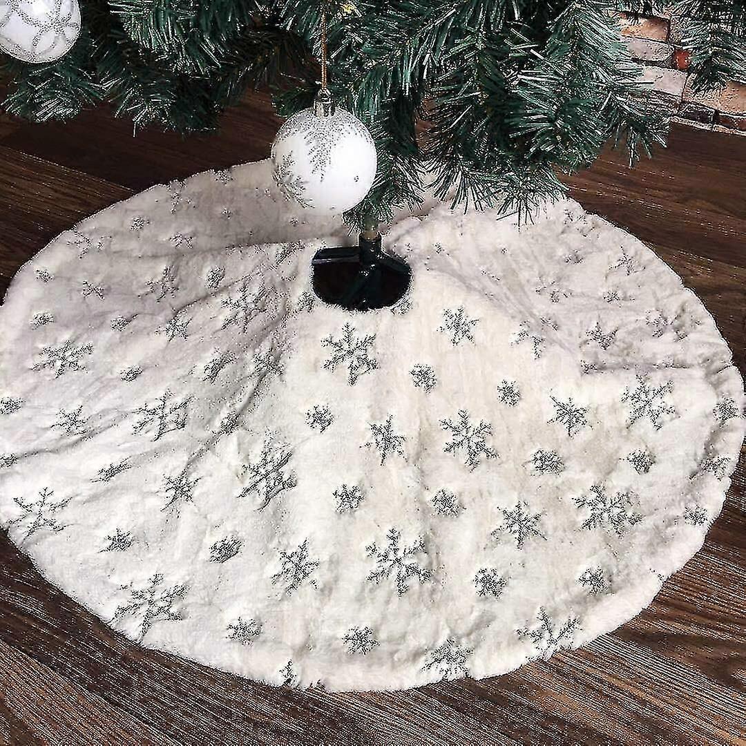 Christmas Tree Skirt,48inch Silver Snowflake Christmas Tree Skirt Soft White Luxury Faux Fur Christmas Tree Skirt For Merry Christmas New Year Party H