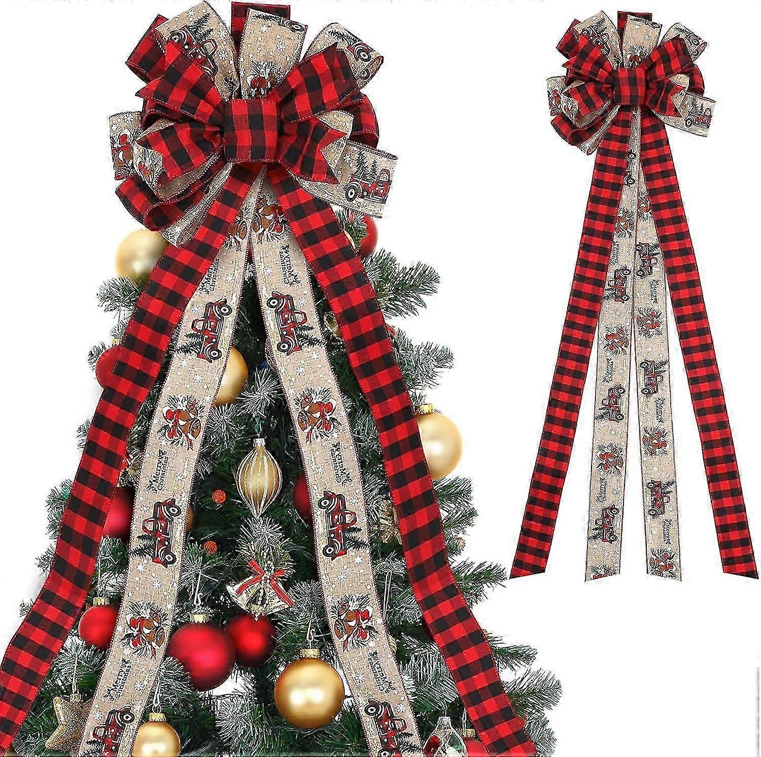 Christmas Tree Topper Bow Plaid Ribbon 1.4m Extra Long