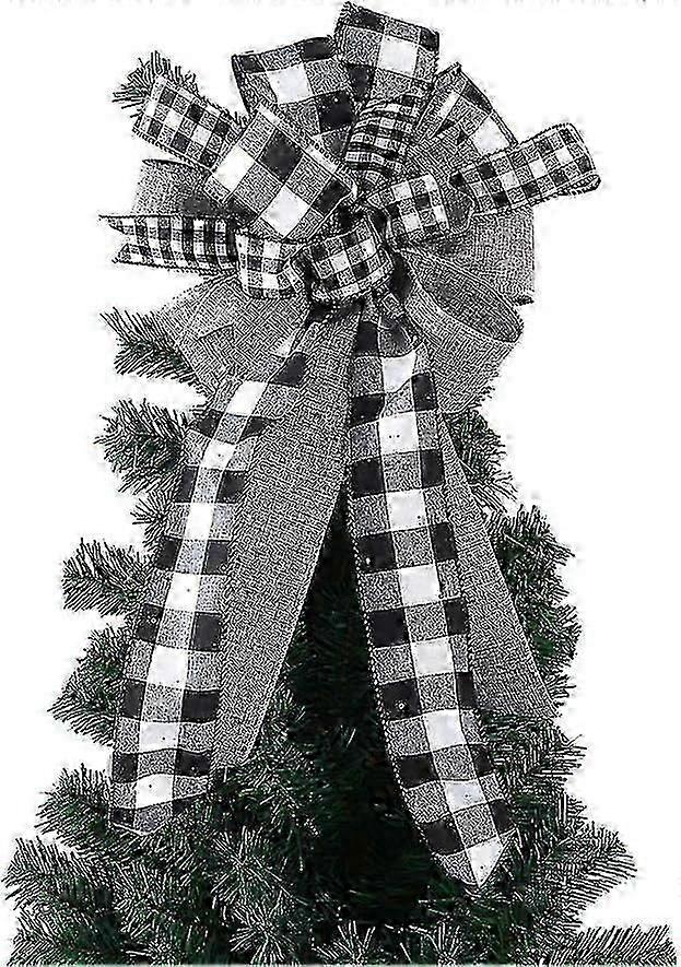 Christmas Tree Topper Bow, Red Black Plaid Buffalo Toppers Decorative Bow, Decoration Gift Bow for Holiday Front Door Wreath Decorations Indoor Outdoo