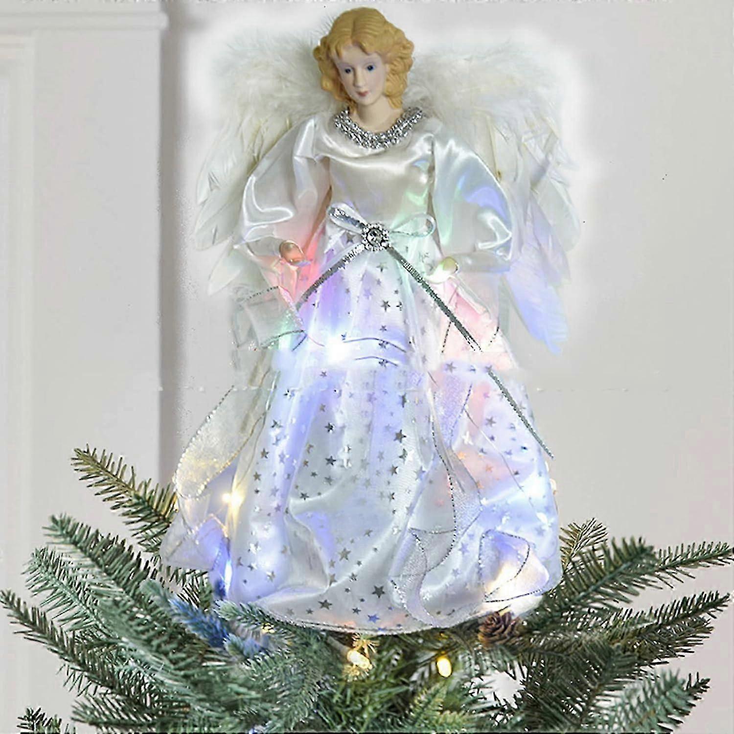 Christmas Tree Topper,LED Fair Angel Christmas Tree Topper Christmas Tree Decoration White Fairy Angel Decor with Feather Wings Christmas Tree Ornamen