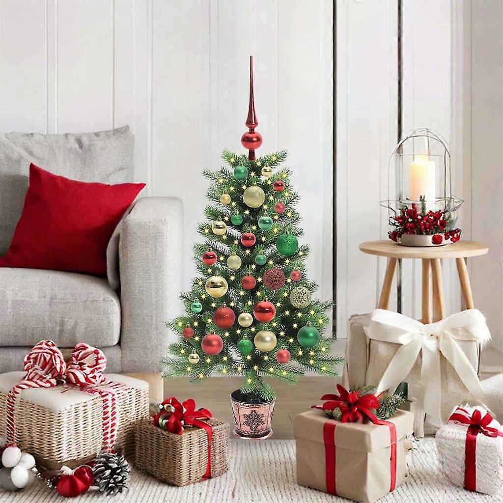 Farbe: GrünMaterial: PEBaumhöhe: 90 cmDurchmesser unten: 51 cmGröße des Ständers: 15 cmLanglebigLebensechte ZweigspitzenLichttyp: LED-StreifenFarbe der Lichter: Warmes WeißAnzahl der LEDs: 150Abstand zwischen LEDs: 10 cmLED-Blitzmodi: 8Stromquelle: USBBatterien inklusive: NeinSpannung: 5 VInnen- / Außenbereich: Verwendung im Innenbereich und geschützten AußenbereichMontage erforderlich: JaLieferumfang:1 x Weihnachtsbaum1 x Ständer1 x LED Lichterkette1 x Spitze20 x 6 cm Kugel21 x 4 cm Kugel20 x 3 cm Kugel Dieses Produkt wird mit 5 V Gleichstrom betrieben, aber die zertifizierte 5-V-USB-Stromquelle ist nicht im Lieferumfang enthalten. Eine höhere Spannung kann zu einer Überhitzung führen und das Gerät beschädigen sowie das Risiko von Überhitzung und Brand verursachen.