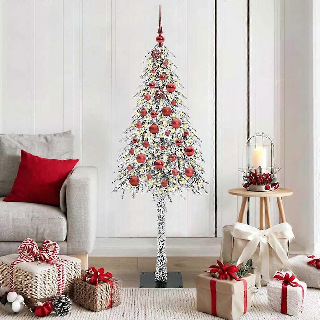 Dieser künstliche Weihnachtsbaum bringt den festlichen Spirit mit einer halben Portion Tradition und Modernität in dein Zuhause. Er wurde so designt, dass er jeden Raum verschönert und ist mit seinem realistischen, schneebedeckten Look sowie der Kegelform ein echter Blickfang. Ob drinnen im Wohnzimmer oder draußen auf der Terrasse, sein subtile Charme und die klaren Linien bieten einen modernen Stil, der perfekt für jede festliche Atmosphäre ist und eine gemütliche Umgebung für dich, deine Familie und Freunde schafft. Hochwertige Materialien: Aus robustem Polyethylen, sieht dieser Weihnachtsbaum richtig echt aus und hält lange durch. Die stabile Metallstruktur sorgt für sicheren Halt und ist ideal für wiederholte Nutzung in den Feiertagszeiten. Damit hast du jedes Jahr einen frischen Look. Dynamische LED-Lichter: Mit LED-Streifenlichtern, die warmes, weißes Licht abgeben, sorgt dieser Baum für eine einladende Stimmung. Du kannst die Lichter kreativ anordnen und sie helfen dir, deine Deko ganz persönlich zu gestalten. Die energiesparende LED-Beleuchtung sorgt für lange Helligkeit ohne viel Stromverbrauch. USB-Stromversorgung: Dank des praktischen USB-Anschlusses kannst du den Baum problemlos über verschiedene USB-Geräte mit Strom versorgen. Damit sparst du dir die Mühe mit den traditionellen elektrischen Installationen. Dieses coole Feature macht ihn vielseitig einsetzbar und perfekt für deine festlichen Beleuchtungswünsche. Flockdesign: Der Kunstschnee an den Ästen verstärkt die realistische Textur des Baums und bringt eine Prise Zauber mit sich. Dieses schöne Detail bringt ein Stück Winterwunderland in dein Zuhause und hebt die festliche Stimmung hervor. Einfache Montage: Fokussiert auf Benutzerfreundlichkeit, braucht der Aufbau des Baums nur einen Schraubendreher und ein bisschen Hilfe von Freunden. Die einfache Montage passt super zum modernen Look, so kannst du dich mehr auf das Genießen der festlichen Stimmung konzentrieren, anstatt über den Aufbau nachzudenken.