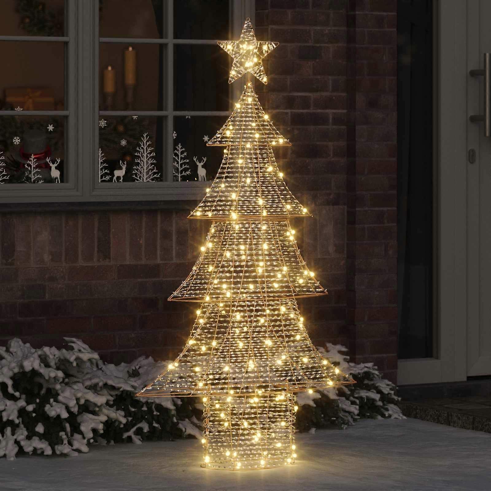 Farbe: WarmweißMaterial: PETGesamtabmessungen: 86 x 22 x 151 cm (L x B x H)Anzahl der LEDs: 160Abstand zwischen LEDs: 10 cmStromquelle: USBLanglebigWetterbeständigDekoriert mit einem fünfzackigen SternVerwendung im Innenbereich und geschützten AußenbereichLieferumfang:1 x 3D Weihnachtsbaum mit fünfzackigem SternMontage erforderlich: Ja