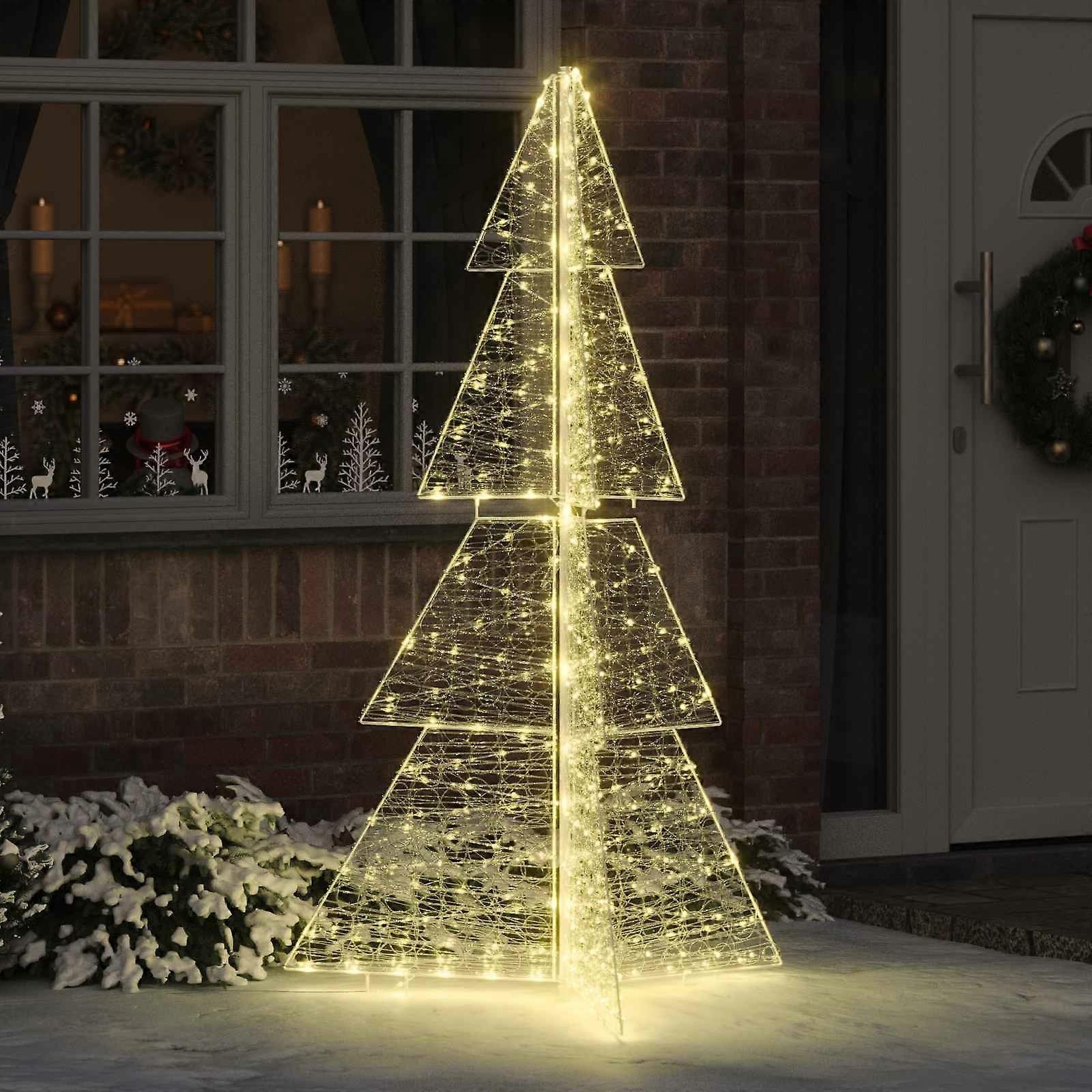 Farbe: Warmes WeißMaterial: AcrylGesamtabmessungen: 104 x 53,5 x 180 cm (L x B x H)Lichttyp: Dekorative LichterkettenAnzahl der LEDs: 240Stromquelle: USBLanglebigVerwendung im Innenbereich und geschützten AußenbereichLieferumfang:1 x WeihnachtsbaumMontage erforderlich: Ja