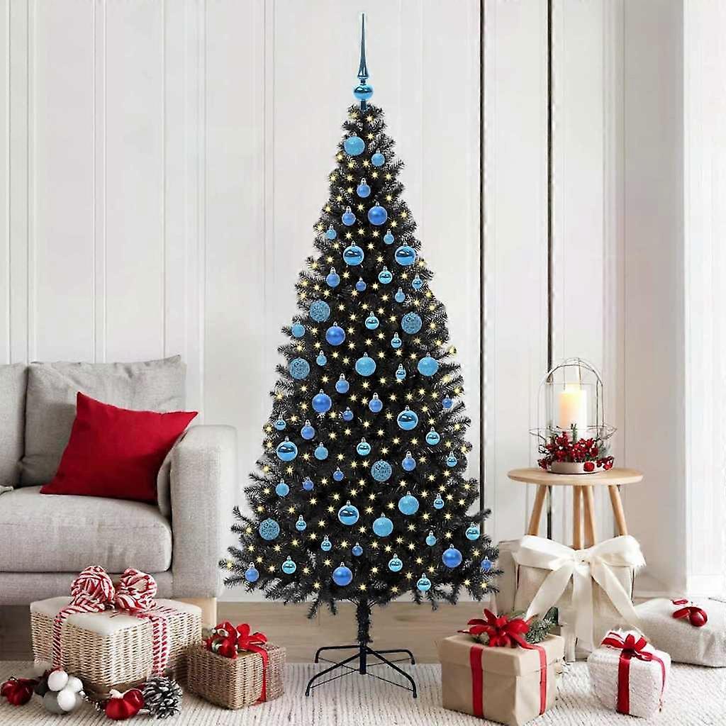 Weihnachtsbaum mit 300 LEDs mit Ständer Schwarz 180 cm PVC