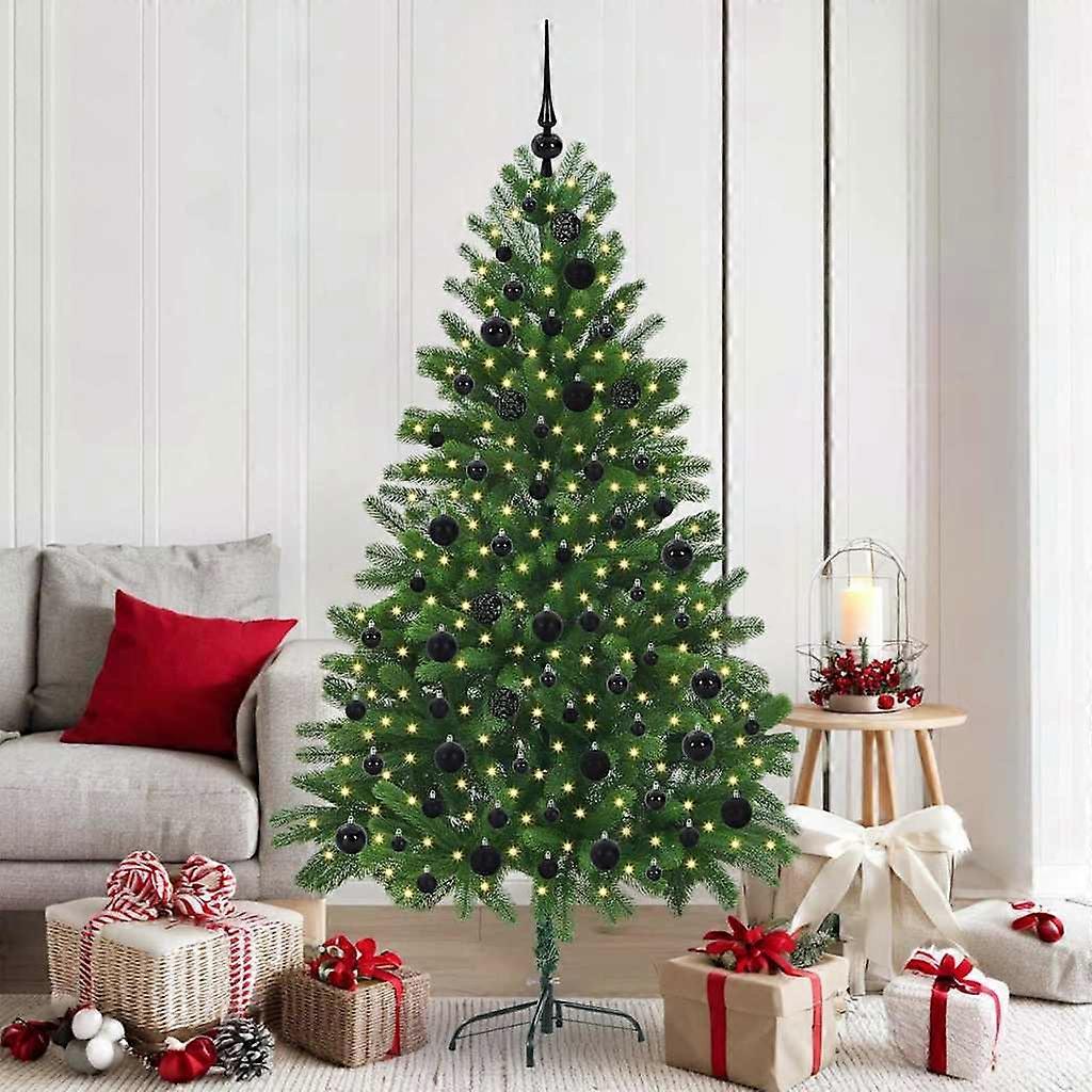 Farbe: GrünMaterial: PEBaumhöhe: 180 cmDurchmesser unten: 90 cmGröße des Ständers: 40 cmLanglebigLebensechte ZweigspitzenLichttyp: LED-StreifenFarbe der Lichter: Warmes WeißAnzahl der LEDs: 300Abstand zwischen LEDs: 10 cmLED-Blitzmodi: 8Stromquelle: USBBatterien inklusive: NeinSpannung: 5 VInnen- / Außenbereich: Verwendung im Innenbereich und geschützten AußenbereichMontage erforderlich: JaLieferumfang:1 x Weihnachtsbaum1 x Ständer1 x LED Lichterkette1 x Spitze40 x 6 cm Kugel40 x 4 cm Kugel40 x 3 cm Kugel Dieses Produkt wird mit 5 V Gleichstrom betrieben, aber die zertifizierte 5-V-USB-Stromquelle ist nicht im Lieferumfang enthalten. Eine höhere Spannung kann zu einer Überhitzung führen und das Gerät beschädigen sowie das Risiko von Überhitzung und Brand verursachen.