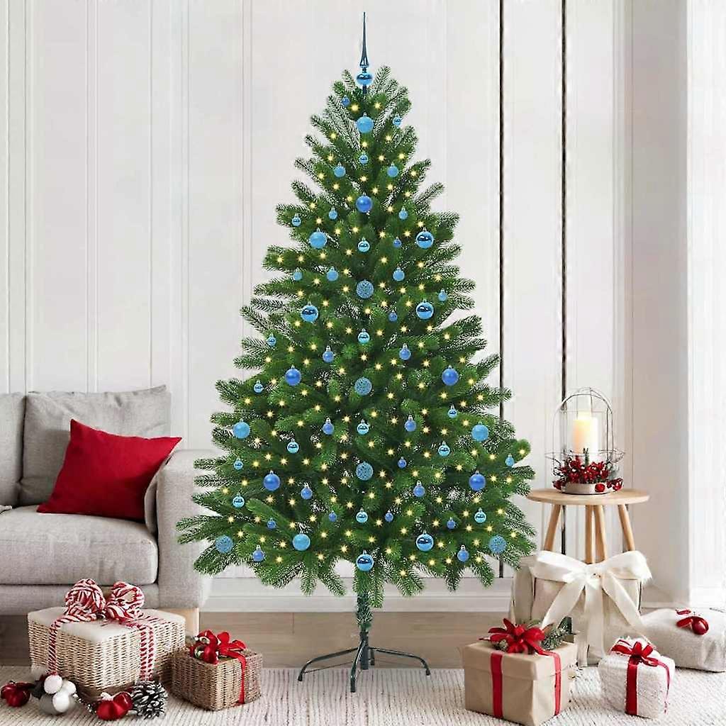 Farbe: GrünMaterial: PEBaumhöhe: 210 cmDurchmesser unten: 105 cmGröße des Ständers: 45 cmLanglebigLebensechte ZweigspitzenLichttyp: LED-StreifenFarbe der Lichter: Warmes WeißAnzahl der LEDs: 300Abstand zwischen LEDs: 10 cmLED-Blitzmodi: 8Stromquelle: USBBatterien inklusive: NeinSpannung: 5 VInnen- / Außenbereich: Verwendung im Innenbereich und geschützten AußenbereichMontage erforderlich: JaLieferumfang:1 x Weihnachtsbaum1 x Ständer1 x LED Lichterkette1 x Spitze40 x 6 cm Kugel40 x 4 cm Kugel40 x 3 cm Kugel Dieses Produkt wird mit 5 V Gleichstrom betrieben, aber die zertifizierte 5-V-USB-Stromquelle ist nicht im Lieferumfang enthalten. Eine höhere Spannung kann zu einer Überhitzung führen und das Gerät beschädigen sowie das Risiko von Überhitzung und Brand verursachen.