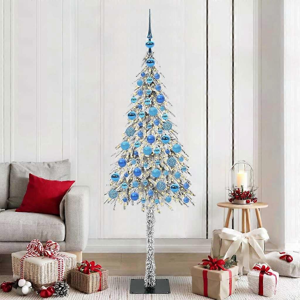 Dieser künstliche Weihnachtsbaum bringt den festlichen Spirit mit einer halben Portion Tradition und Modernität in dein Zuhause. Er wurde so designt, dass er jeden Raum verschönert und ist mit seinem realistischen, schneebedeckten Look sowie der Kegelform ein echter Blickfang. Ob drinnen im Wohnzimmer oder draußen auf der Terrasse, sein subtile Charme und die klaren Linien bieten einen modernen Stil, der perfekt für jede festliche Atmosphäre ist und eine gemütliche Umgebung für dich, deine Familie und Freunde schafft. Hochwertige Materialien: Aus robustem Polyethylen, sieht dieser Weihnachtsbaum richtig echt aus und hält lange durch. Die stabile Metallstruktur sorgt für sicheren Halt und ist ideal für wiederholte Nutzung in den Feiertagszeiten. Damit hast du jedes Jahr einen frischen Look. Dynamische LED-Lichter: Mit LED-Streifenlichtern, die warmes, weißes Licht abgeben, sorgt dieser Baum für eine einladende Stimmung. Du kannst die Lichter kreativ anordnen und sie helfen dir, deine Deko ganz persönlich zu gestalten. Die energiesparende LED-Beleuchtung sorgt für lange Helligkeit ohne viel Stromverbrauch. USB-Stromversorgung: Dank des praktischen USB-Anschlusses kannst du den Baum problemlos über verschiedene USB-Geräte mit Strom versorgen. Damit sparst du dir die Mühe mit den traditionellen elektrischen Installationen. Dieses coole Feature macht ihn vielseitig einsetzbar und perfekt für deine festlichen Beleuchtungswünsche. Flockdesign: Der Kunstschnee an den Ästen verstärkt die realistische Textur des Baums und bringt eine Prise Zauber mit sich. Dieses schöne Detail bringt ein Stück Winterwunderland in dein Zuhause und hebt die festliche Stimmung hervor. Einfache Montage: Fokussiert auf Benutzerfreundlichkeit, braucht der Aufbau des Baums nur einen Schraubendreher und ein bisschen Hilfe von Freunden. Die einfache Montage passt super zum modernen Look, so kannst du dich mehr auf das Genießen der festlichen Stimmung konzentrieren, anstatt über den Aufbau nachzudenken. Farbe: WeißMaterial: PE und StahlBaumhöhe: 180 cmDurchmesser unten: 76 cmGröße des Ständers: 30 cmLanglebigLebensechte ZweigspitzenWiederverwendbare einfache EinrichtungAnzahl der PE-Spitzen: 189Anzahl der Christbaumkugeln: 120Lichttyp: Dekorative LichterkettenFarbe der Lichter: Warmes WeißLänge der Lichter: 3000 cmAnzahl der LEDs: 300Abstand zwischen LEDs: 10 cmLED-Blitzmodi: 8Stromquelle: USBBatterien inklusive: NeinSpannung: 5 VInnen- / Außenbereich: Verwendung im Innenbereich und geschützten AußenbereichMontage erforderlich: JaLieferumfang:1xWeihnachtsbaum,1xLED-Lichtschlauch,1xSpitze,40x6cmBall,40x4cmBall,40x3cmBall Dieses Produkt wird mit 5 V Gleichstrom betrieben, aber die zertifizierte 5-V-USB-Stromquelle ist nicht im Lieferumfang enthalten. Eine höhere Spannung kann zu einer Überhitzung führen und das Gerät beschädigen sowie das Risiko von Überhitzung und Brand verursachen.