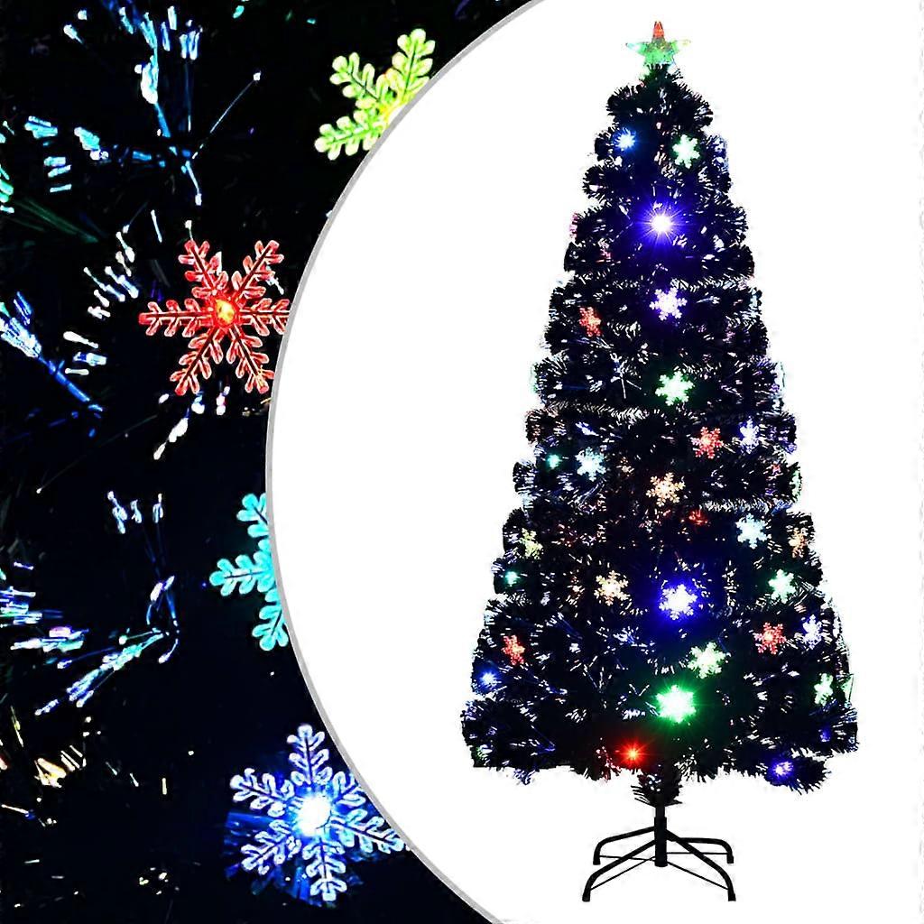 Weihnachtsbaum mit LED-Schneeflocken Schwarz 150 cm Fiberoptik