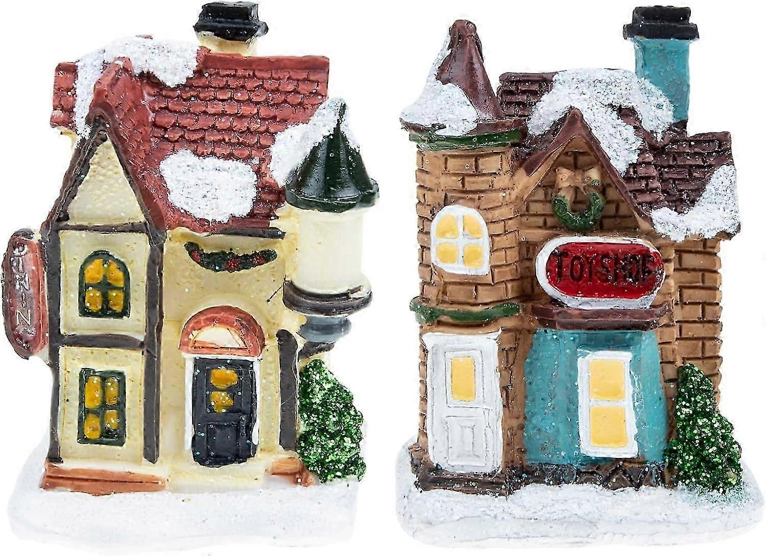 Christmas Village Set of 2 Light up Country Houses Mini Xmas House Holiday Snow Town Landscape Scene Adornments Christmas Party 7.5x5.5cm,7.5x5.5cm