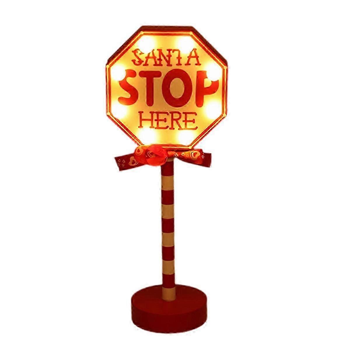 Christmas Vintage Lights North Pole Sign LED Light Street Sign Christmas Wooden Tabletop Decoration Christmas Decor A