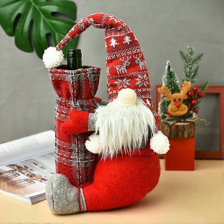 Christmas Wine Bottle Cover-Faceless Santa Claus Decoration,Grey Grey