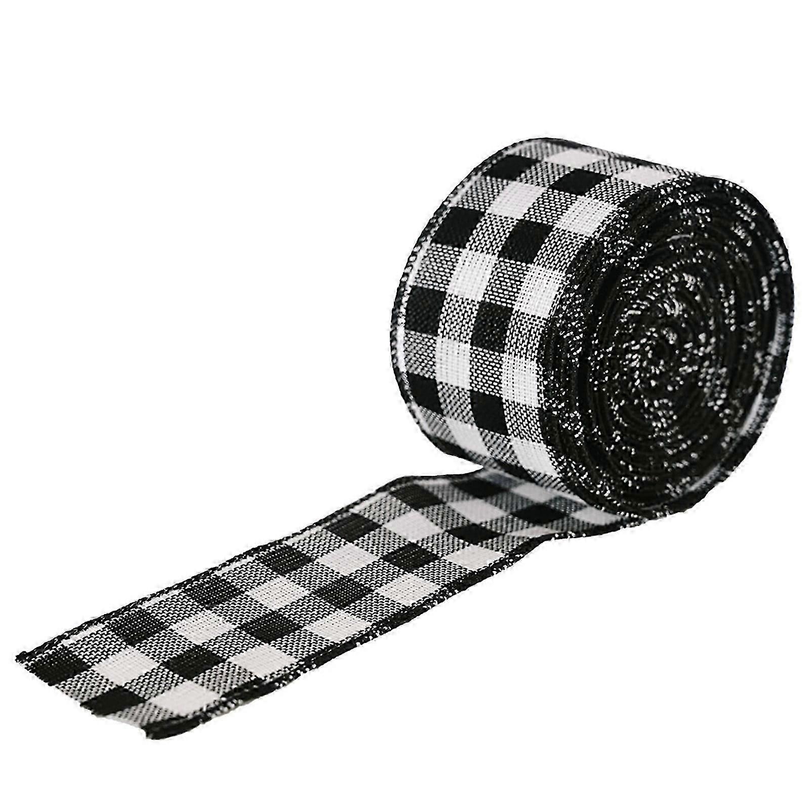 Christmas Wired Edge Ribbons: Buffalo Plaid, Solid Burlap, Gingham Craft Ribbon for DIY Wrapping, Party Bows, Compatible with Xmas Decor