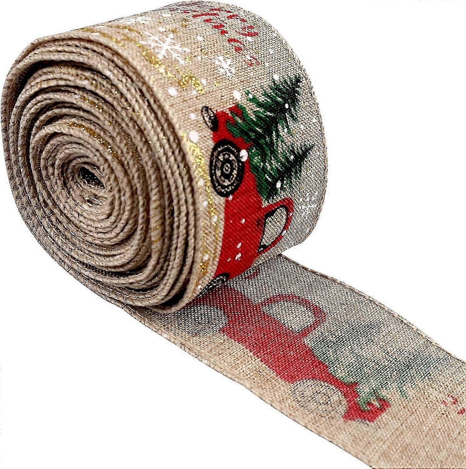 Christmas Wired Ribbon, 2 Inch X 5.5 Yard Red Vintage Truck Ribbon Christmas Tree Bows Ribbon For Gift Wrapping Floral Bows Craft Christmas Tree Decor