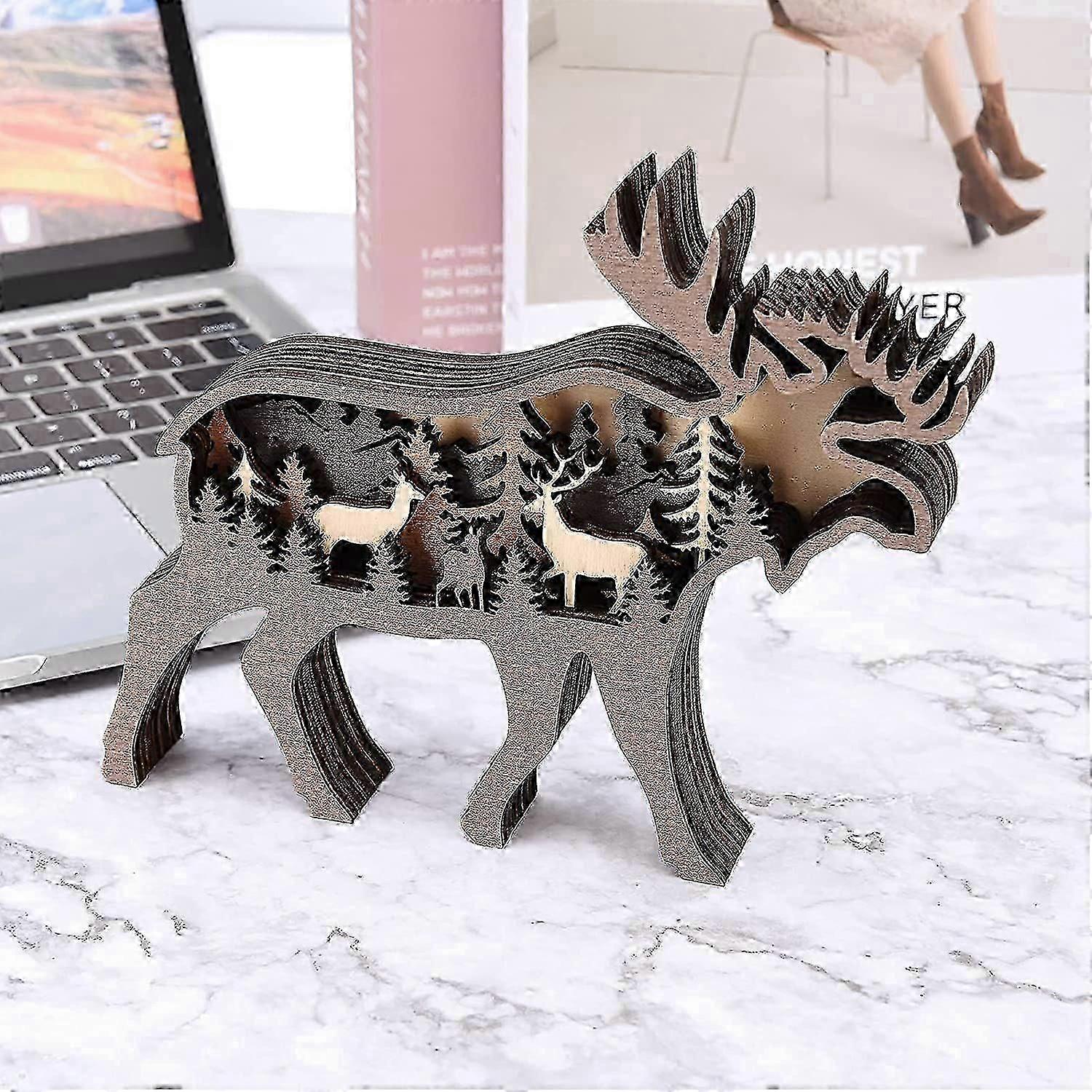 Christmas Wooden Brown Elk s Decorations, with Hollowed Back Multi-Layer Forest