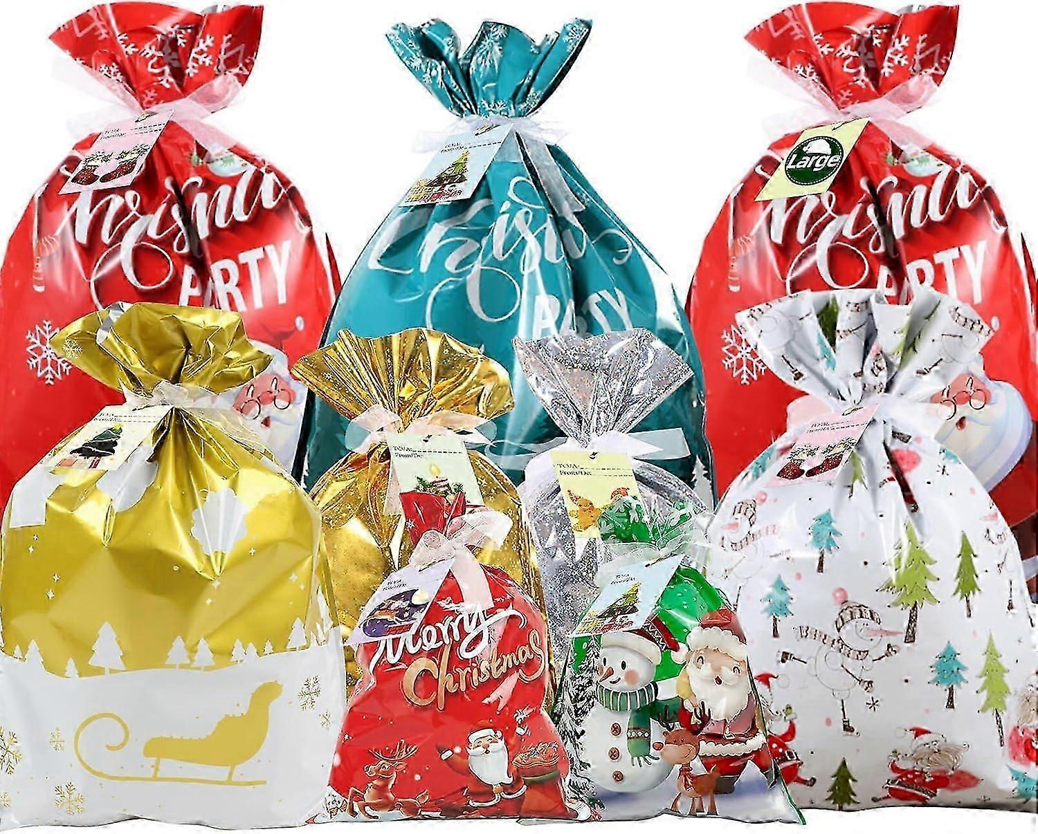 Christmas Wrapping Gift Bags Large, 20Pcs Christmas String Bags with 30Pcs Tags, Large Medium Small Gift Bags, Xmas Bags for Presents for Christmas Bi