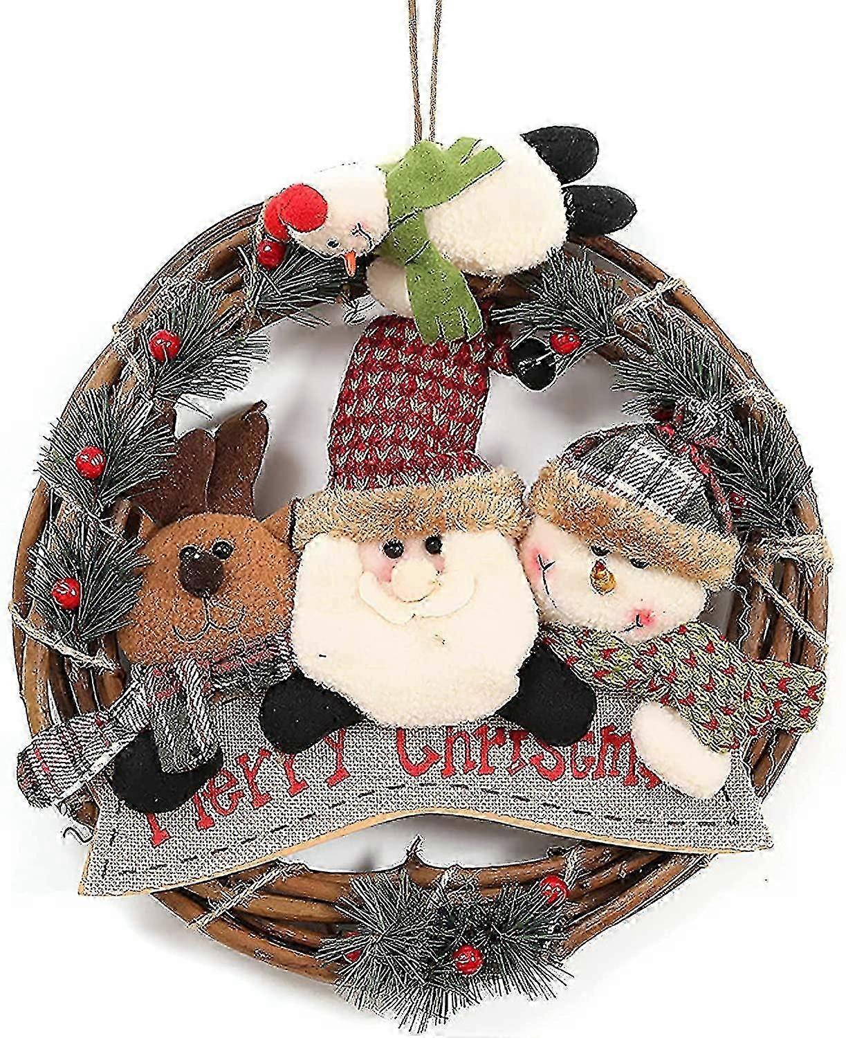 Christmas Wreath Christmas Wreaths Christmas Rattan Pendant Snowman Santa Claus Rattan Wreaths Christmas Hanging Ornament For Christmas Decoration