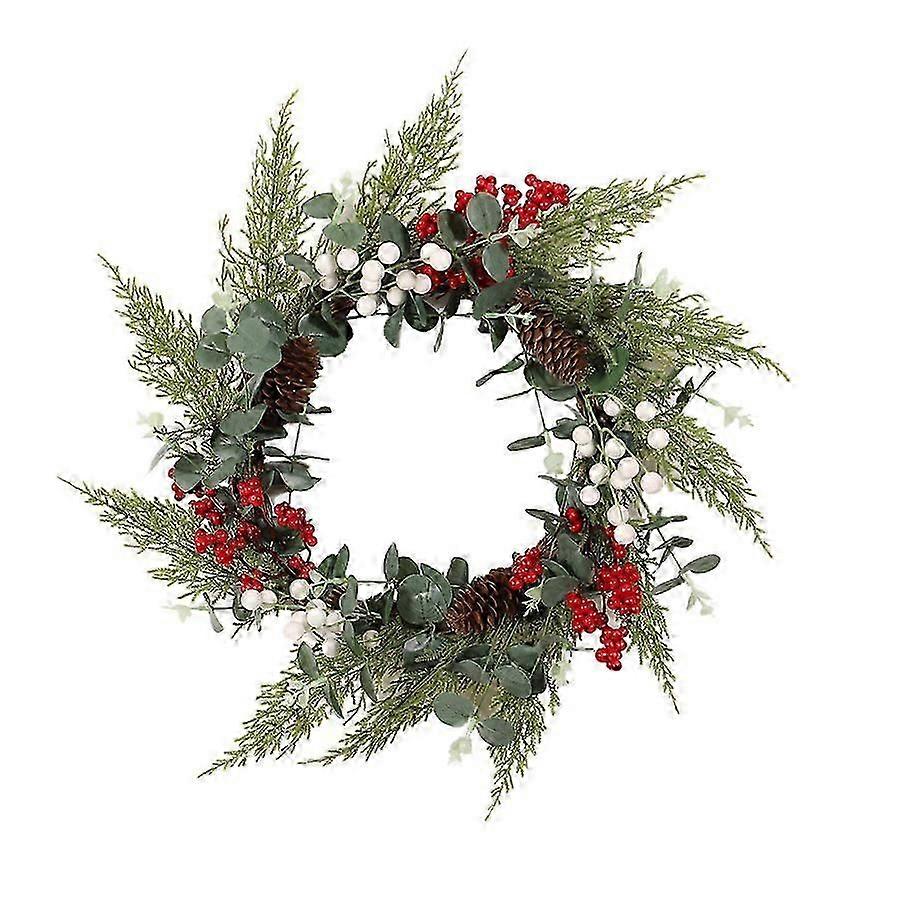 Christmas Wreath For Front Door Holiday Season Decoration With Pine Cones And Red Berries Artificial Leaf Garland For Indoor Outdoor Use