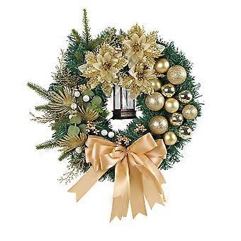 Christmas Wreath Front Door Decoration Golden Christmas Ball Pine Needle Wreath 2024 Christmas Garland Ornament
