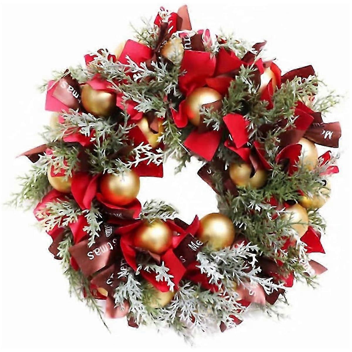 Christmas Wreath Winter Garland 42cm Artificial Wreath with Christmas Balls Ribbon Christmas Decorations Front Door Wreath for Winter Christmas Holida