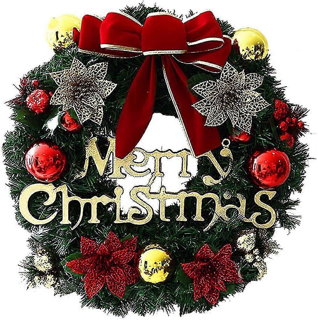 Christmas Wreaths 50cm Artificial Garland With Bowknot And Baubles Xmas Decorations For Fireplaces