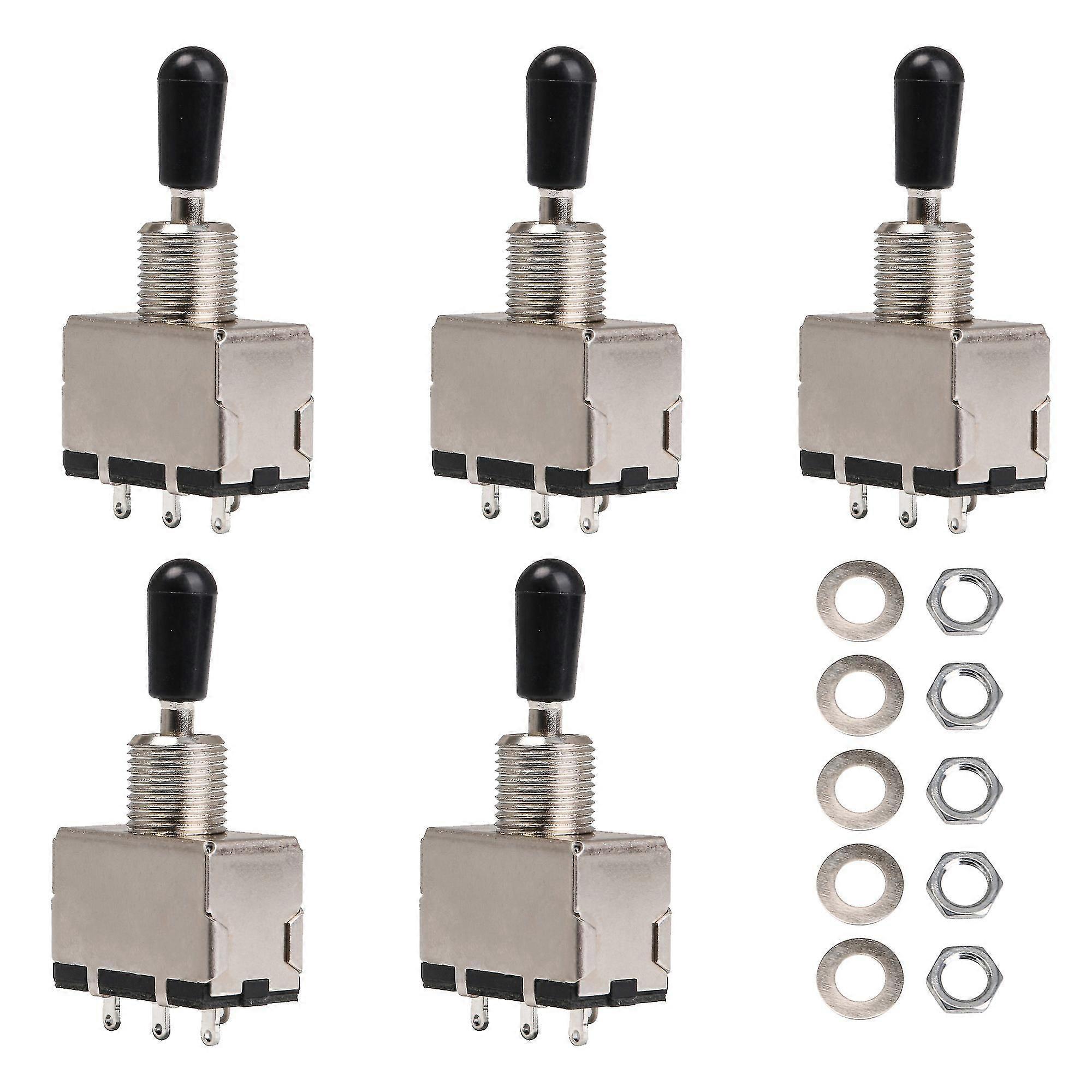 Chrome 3 Way Sealed Pickup Selector Enclosed Black Tip Toggle Switch Set of 5