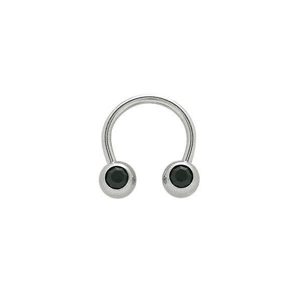 Circular barbell 14g horseshoe ring with black cz gem 6mm ball ends
