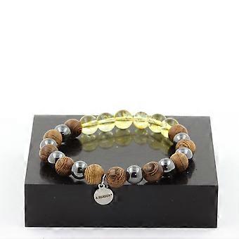 Citrine + Hematite + wood Beads Bracelet 8 mm