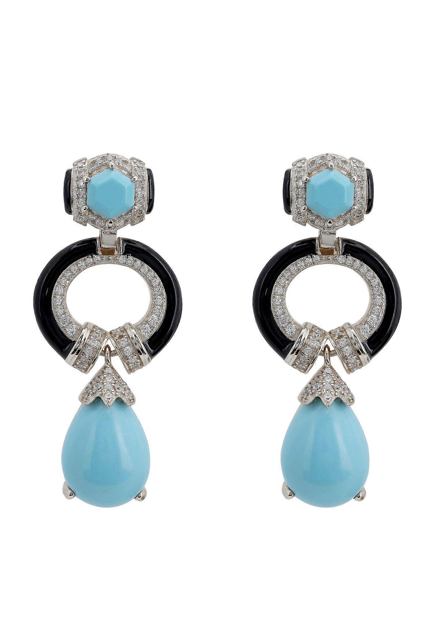 Clara Bow Turquoise & Enamel Drop Earrings Silver