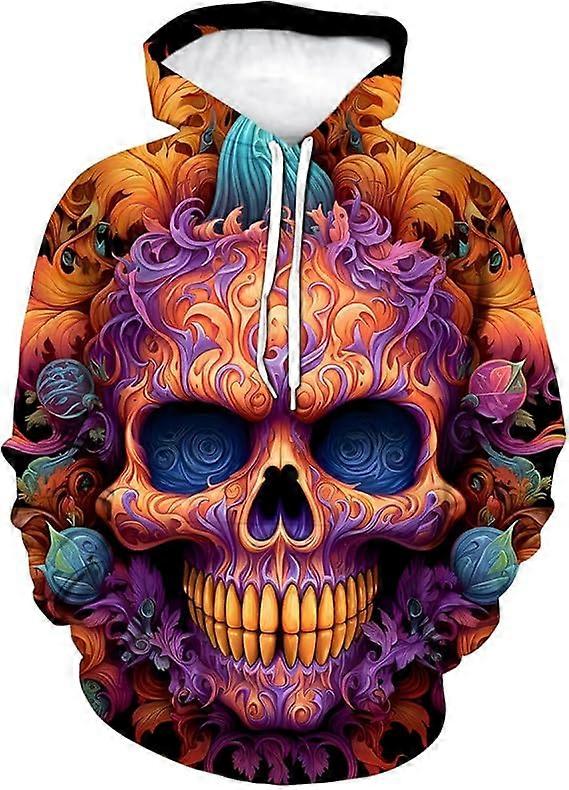 Classic 3D Halloween Pumpkin Skull Cool Graphic Hoodies Hooded Colorful Halloween Skeleton Sweatshirts, Small, Blue