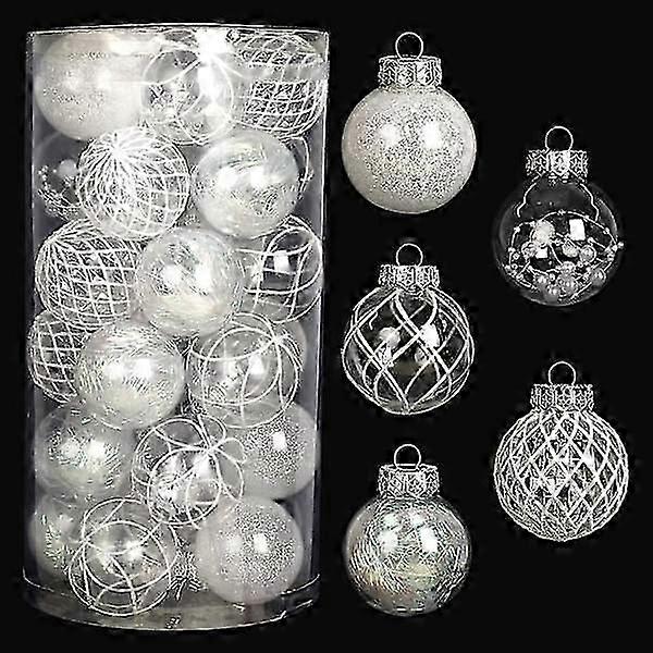 Clear Christmas baubles, 30-pack 2.36 inch white Christmas baubles for Christmas tree with delicate filling, unbreakable hanging Christmas baubles