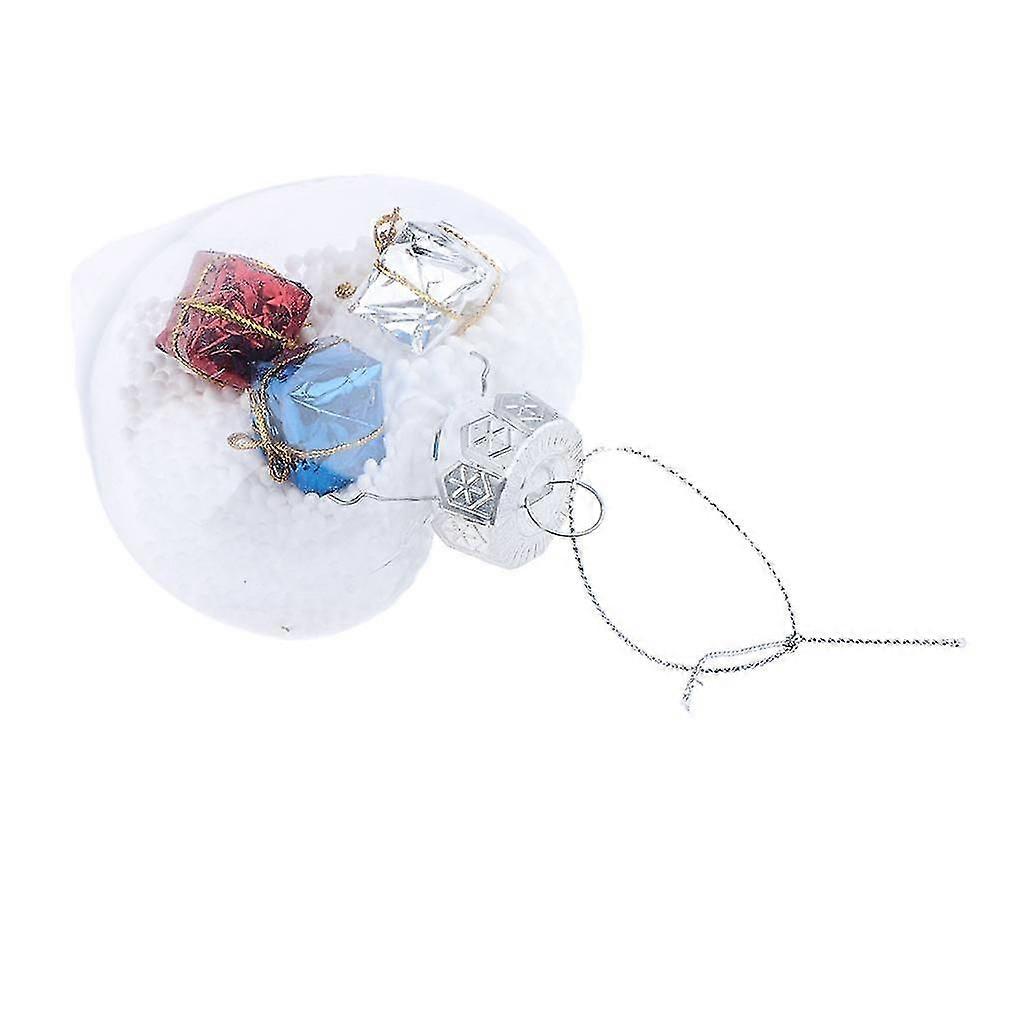 Description:Romantic clear ball filled with foam snow and gifts christmas baubles tree ornament.Can be opened, just use it as xmas ornament or you can also put sweets or gifts, ribbon pieces, mistletoe, flowers or whatever others inside if you like.Perfect Christmas seasonal festival decoration for home, hotel, office, mansion, restaurant, shopping mall or any other places.Material: PlasticSize: Approx. 9 x 5 x 10 cm/3.5 x 2 x 3.9 inch, Rope length: Approx. /7.9 inchPackage Includes:1 Piece Christmas Ball OrnamentNote:1. Color might be slightly different due to the color calibration of each individual monitor.2. Please allow the tiny measuring deviation due to manual measurement.