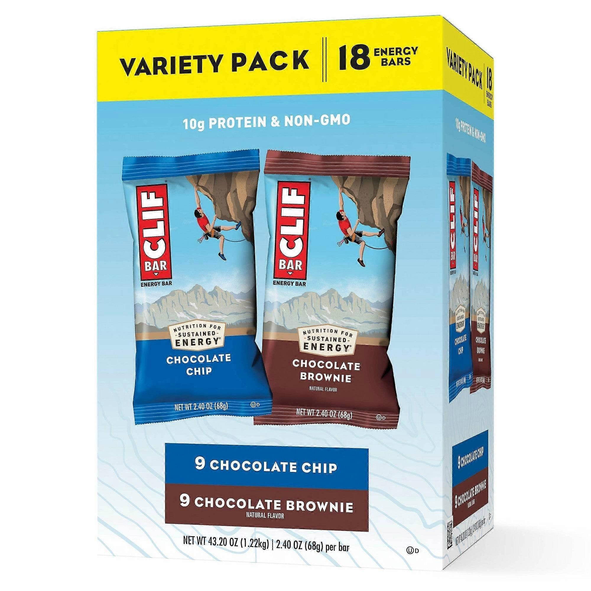 Clif Bar Variety Pack Chocolate Chip And Chocolate Brownie Energy Bars, 18 Ea