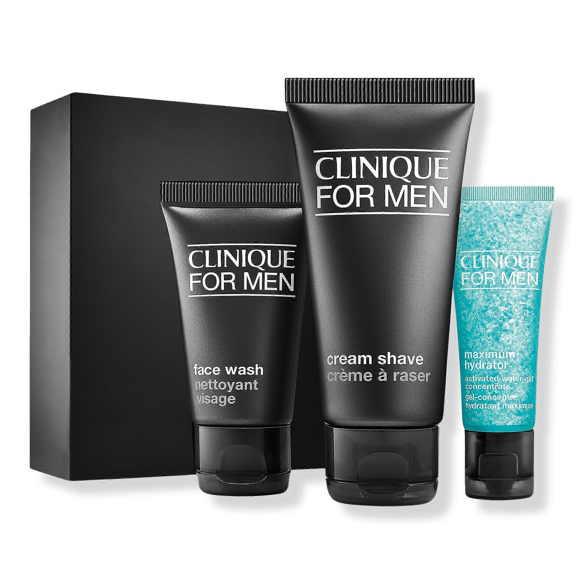 Clinique For Men Daily Intense Hydration set keeps even the driest skins feeling smooth and comfortable anytime, anywhere. Benefits Simple solutions for intense hydration. Perfectly sized to try, to travel.Face Wash: Cleanses gently yet thoroughly.Cream Shave: Provides a rich buffer against razor drag and nicks.Maximum Hydrator Water-Gel Concentrate: Ultralight and gives a 179% moisture boost for instantly plumper skin.Dermatologist tested.No parabens. No phthalates. Allergy tested. Fragrance-free. Includes Clinique For Men Face Wash (1.0 oz)Clinique For Men Cream Shave (2.0 oz)Clinique For Men Maximum Hydrator Activated Water-Gel Concentrate (0.5 oz) UPC: 000002526890 Weight: 0.88 lbs