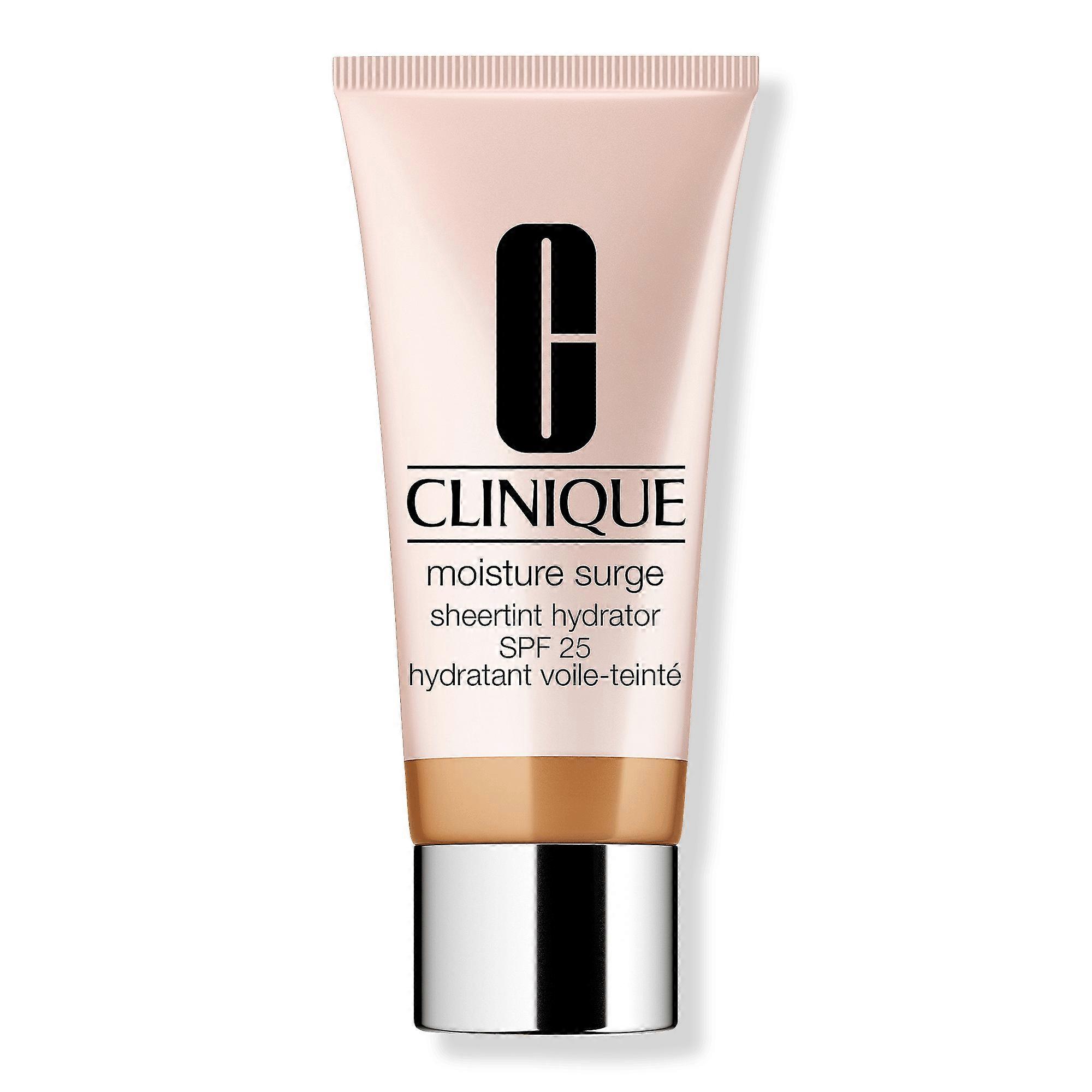 Clinique Moisture Surge Sheertint Hydrator SPF 25 is a tinted hydrator that provides 12 hours of hydration, complexion perfection, and protection all in one. Benefits All Skin Types.Coverage: Sheer.Finish: Natural.Sheer tint perfects and covers.Powerful hydrating ingredients, including hyaluronic acid and activated aloe water, keep skin plumped and dewy for 12 hours.Sweat- and humidity-resistant formula leaves skin with a fresh, natural finish all day.Dermatologist and ophthalmologist tested.Non-acnegenic.Allergy tested. Formulated Without ParabensPhthalatesOil-freeFragrance Inactive Ingredients: Water (Aqua), VP/VA Copolymer, Alcohol Denat, Propylene Glycol, Triethanolamine, Carbomer, Phenoxyethanol, Methylparaben, Propylparaben, Glycerin, Tetrasodium EDTA, Hydrolyzed Glycosaminoglycans, Chamomilla Recutita (Matricaria) Flower/Leaf Extract, Sodium Hyaluronate, Ethylparaben, Butylparaben. May Contain: Titanium Dioxide (CI 77891), Mica (CI 77019), Iron Oxides (CI 77491, CI 77492, CI 77499), Carmine (CI 75491). Suggested Use: In AM, apply directly to clean skin or over your favorite Clinique moisturizer. A little goes a long way. Squeeze small amount and warm between fingers. UPC: 000002562139 Weight: 0.59 lbs