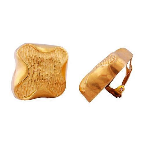 Diese wunderschönen, ca. 27x29mm großen Bicolor-Ohrclips mit der goldfarbenen Oberfläche passen farbunabhängig zu allen Kleidungsstücken. Aus den ca. 9mm hohen, viereckigen Clips aus hochwertigem Kunststoff schält sich aus glatten Seitenwänden in der Mitte eine geschwungene Form heraus, die mit den ungleichen Balken an ein christliches Kreuz erinnert. Diese Kreuz-Form wird betont durch eine gestrichelte unebene matt-glänzende Oberflächenstruktur. Die goldfarbene Clipmechanik ist aus Messing. Ohrschmuck betont zusätzlich das Gesicht und rundet Ihren Auftritt glanzvoll ab. Alle Bestandteile dieser metallfarbenen Modeschmuck-Ohrringe wurden in Deutschland produziert. Verkauf paarweise. Abmessung: 27x29mm Material: Kunststoff Preis per 1 Paar