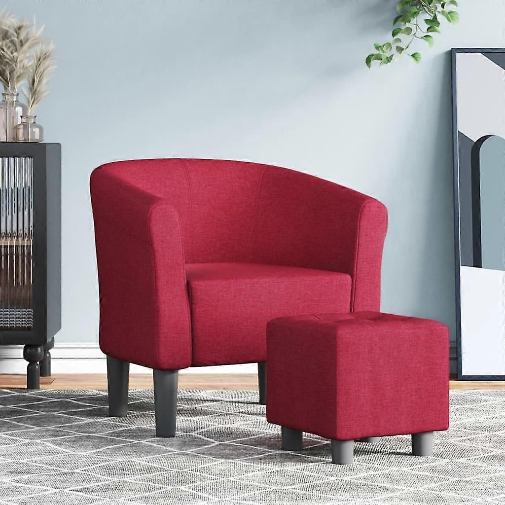 Clubsessel mit Fußhocker Weinrot Stoff