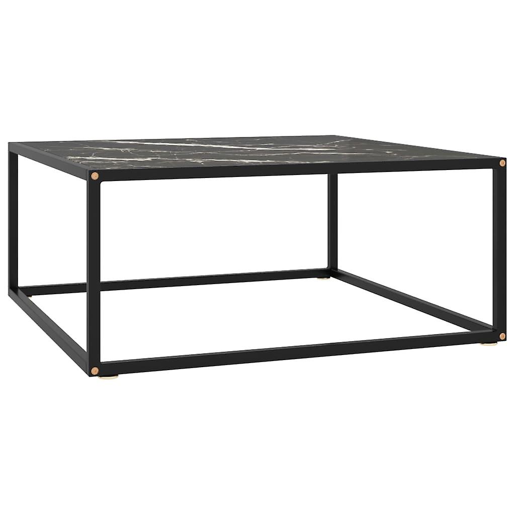 Couchtisch Schwarz mit Schwarzem Glas in Marmor-Optik 80x80x35