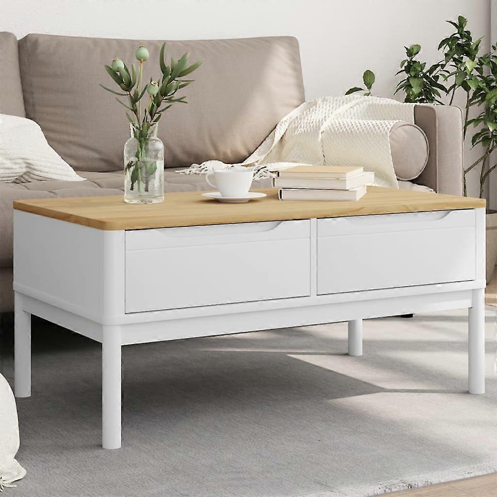Couchtisch FLORO Weiß 99x55,5x45 cm Massivholz Kiefer
