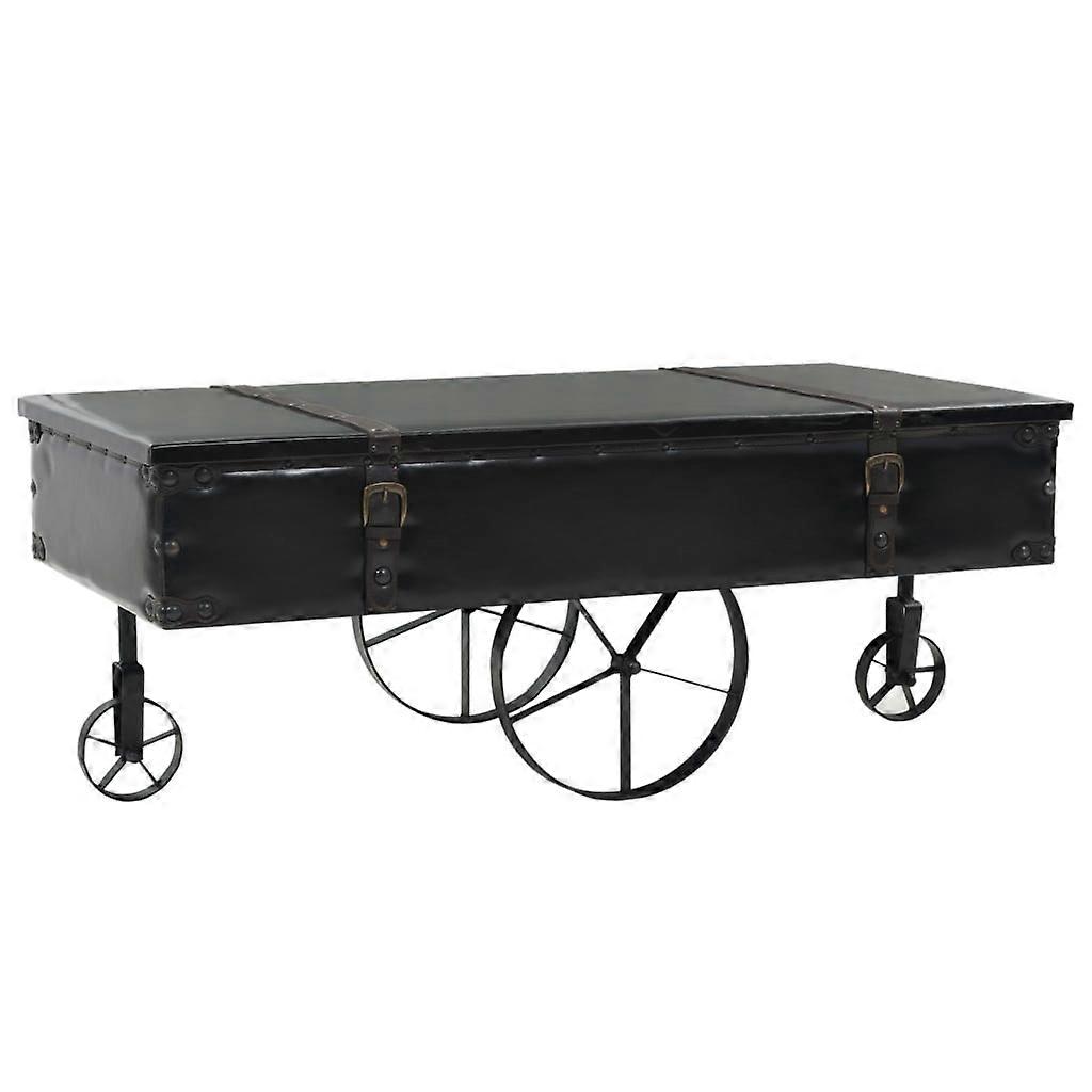 Farbe: SchwarzMaterial: MDF + Kunstleder + Tannenholz + StahlAbmessungen: 110 x 55 x 43 cm (L x B x H)Rad-Durchmesser (groß): 30 cmRad-Durchmesser (klein): 12 cmKleine Räder zwecks Mobilität und große Räder zwecks DekorationMaterial: Baumwolle: 20%, Polyester: 50%, Polyurethan: 30%