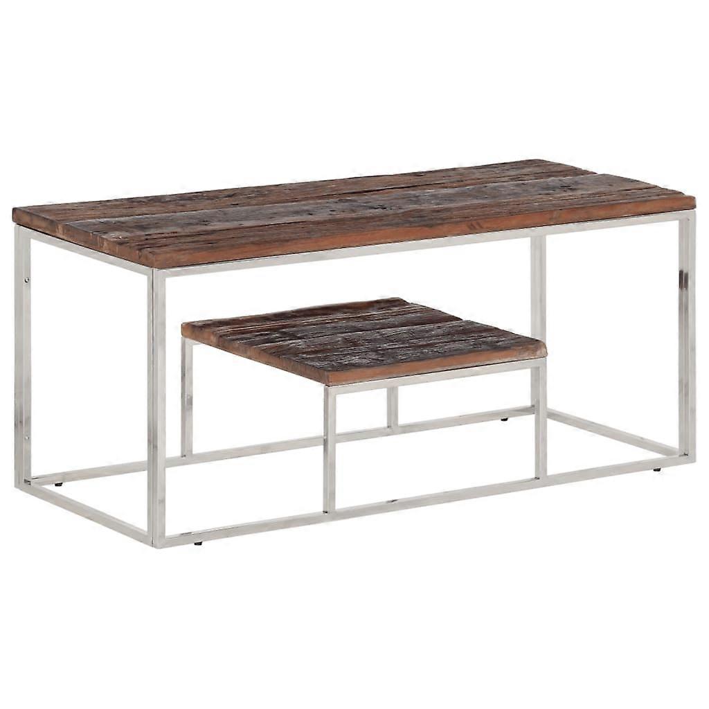 Couchtisch Silbern Edelstahl und Massive Holzschwellen