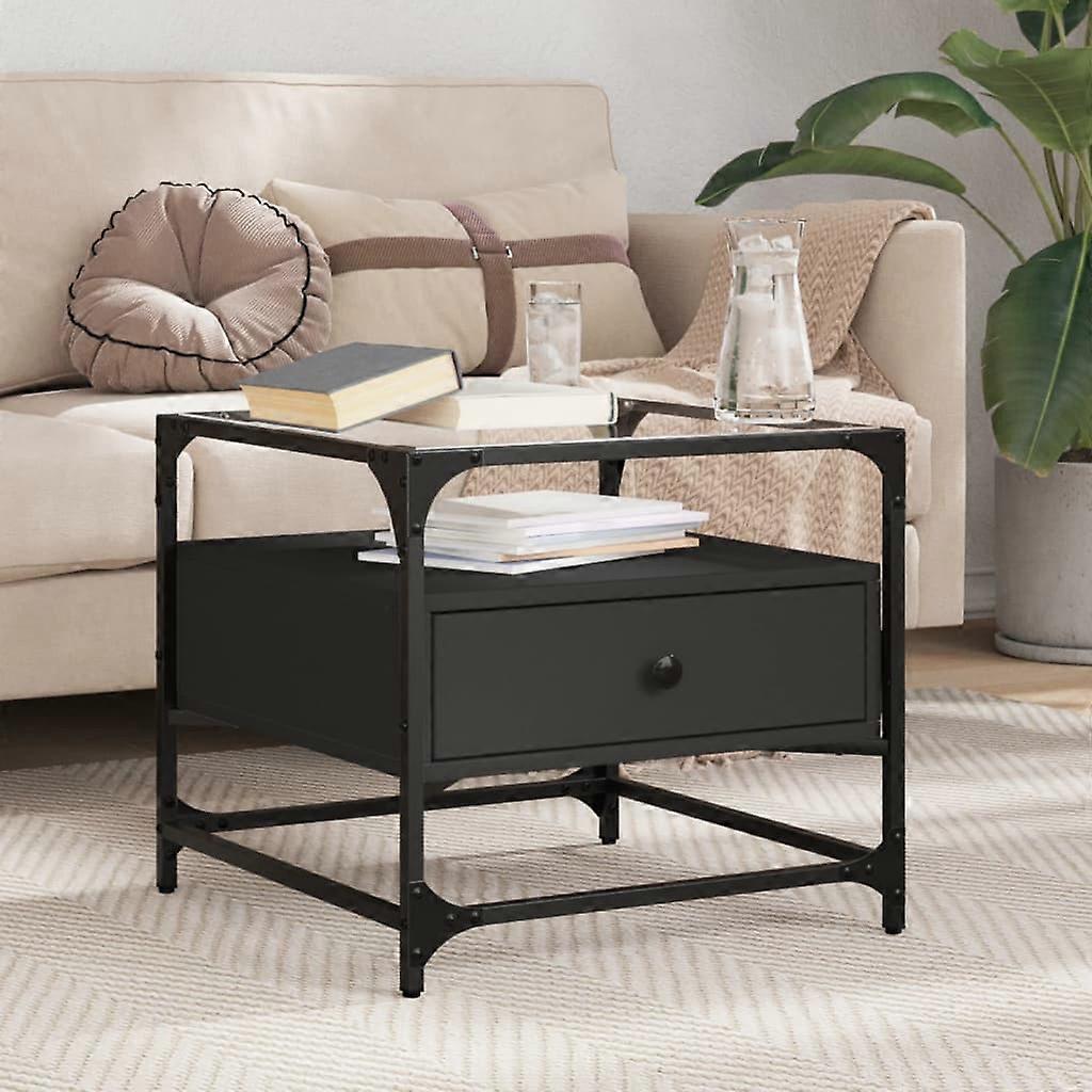 Couchtisch mit Glasplatte Schwarz 50x50x45 cm Stahl