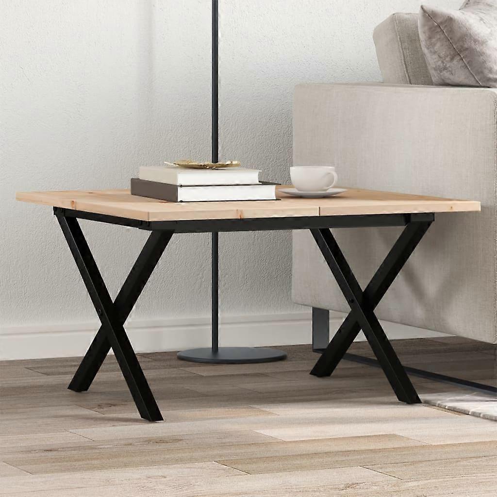 Couchtisch X-Gestell 60x60x40cm Massivholz Kiefer und Stahl