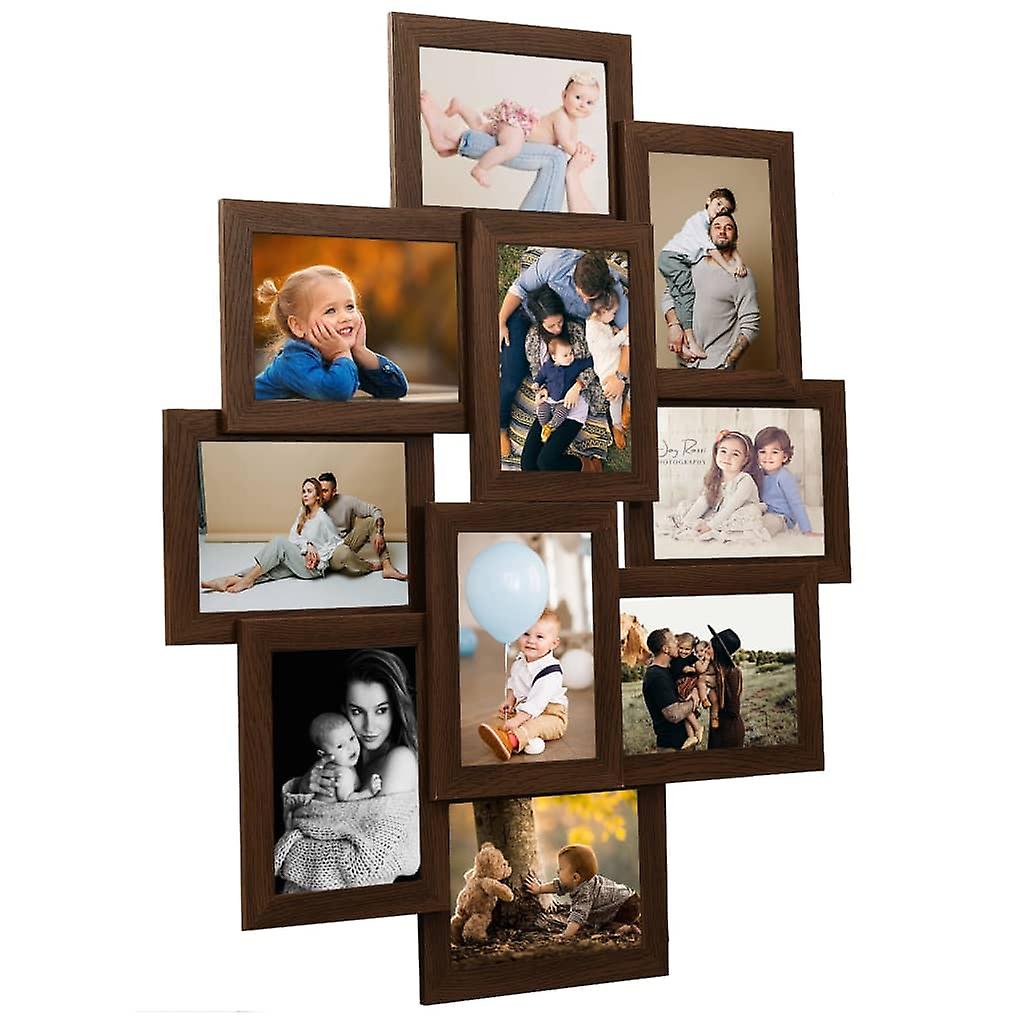 Collage Bilderrahmen für 10x(10x15 cm) Fotos Dunkelbraun MDF
