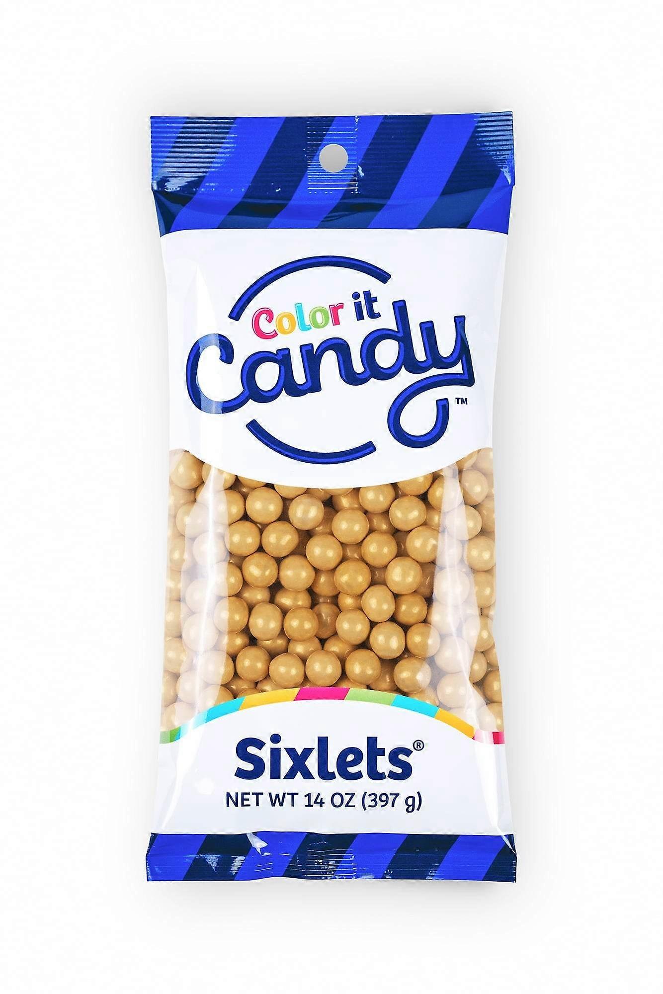 With Color it Candy Sixlets, the world of color and creativity is at your fingertips.Color It Candy Decorative Sixlet Chocolatey Candy Pegs, 14 Oz, Shimmer Gold: Decorative touch to all events Give them as party favors or displays Gluten Free .39 inch pegs 14oz bag