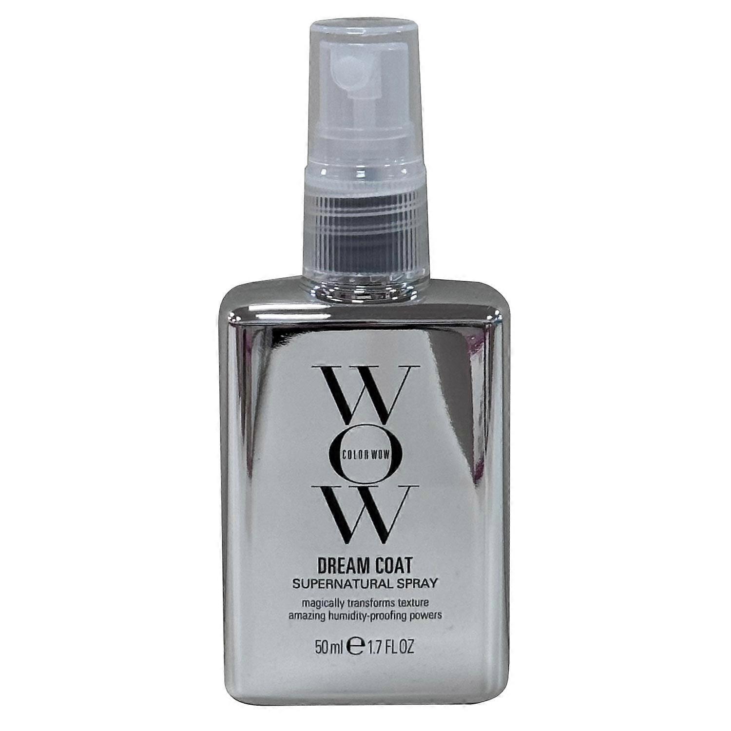 Color WOW Dream Coat Supernatural Spray is an award-winning anti-humidity treatment designed to keep hair sleek, smooth and frizz-free—even in the highest humidity. This innovative formula forms an invisible, waterproof shield around the hair, preventing moisture from ruining your style.Heat-activated for maximum performance, Dream Coat delivers long-lasting results that can last through 3–4 shampoos, leaving hair silky, glossy and perfectly controlled without weighing it down.Who Is This For?This anti-humidity spray is ideal for:Frizzy, unruly or humidity-prone hairThose living in humid or damp climatesHair that puffs, curls or loses shape in moistureBlow-dried, straightened or smooth stylesAnyone wanting long-lasting, sleek resultsWhat Results to ExpectImmediate results:Sleek, smooth, frizz-free hairGlossy, polished finishStyles that hold their shapeWith continued wear:Protection against humidityResults that last through 3–4 shampoosConsistently smooth, manageable hairProduct DetailsAward-winning anti-humidity sprayActivated by heatStops hair reacting to moistureForms an invisible waterproof sealLong-lasting results through 3–4 shampoosLightweight, non-greasy formulaIdeal for blow-drying and heat styling50ml travel sizeFAQHow does Dream Coat work?It is heat-activated and forms an invisible, waterproof shield around each hair strand to block humidity.How long do the results last?Results can last through 3–4 shampoos.Does it weigh hair down?No — the formula is lightweight and leaves hair soft and natural.Do I need to use heat?Yes — Dream Coat must be activated with heat, such as a blow-dryer, to work effectively.DIRECTIONS:Shampoo, condition. Towel dry hair; divide into sections. Spray each section liberally, comb through. Blow-dry each section using tension. Dryer heat required to activate product. Long lasting, use every 3-4 shampoos.