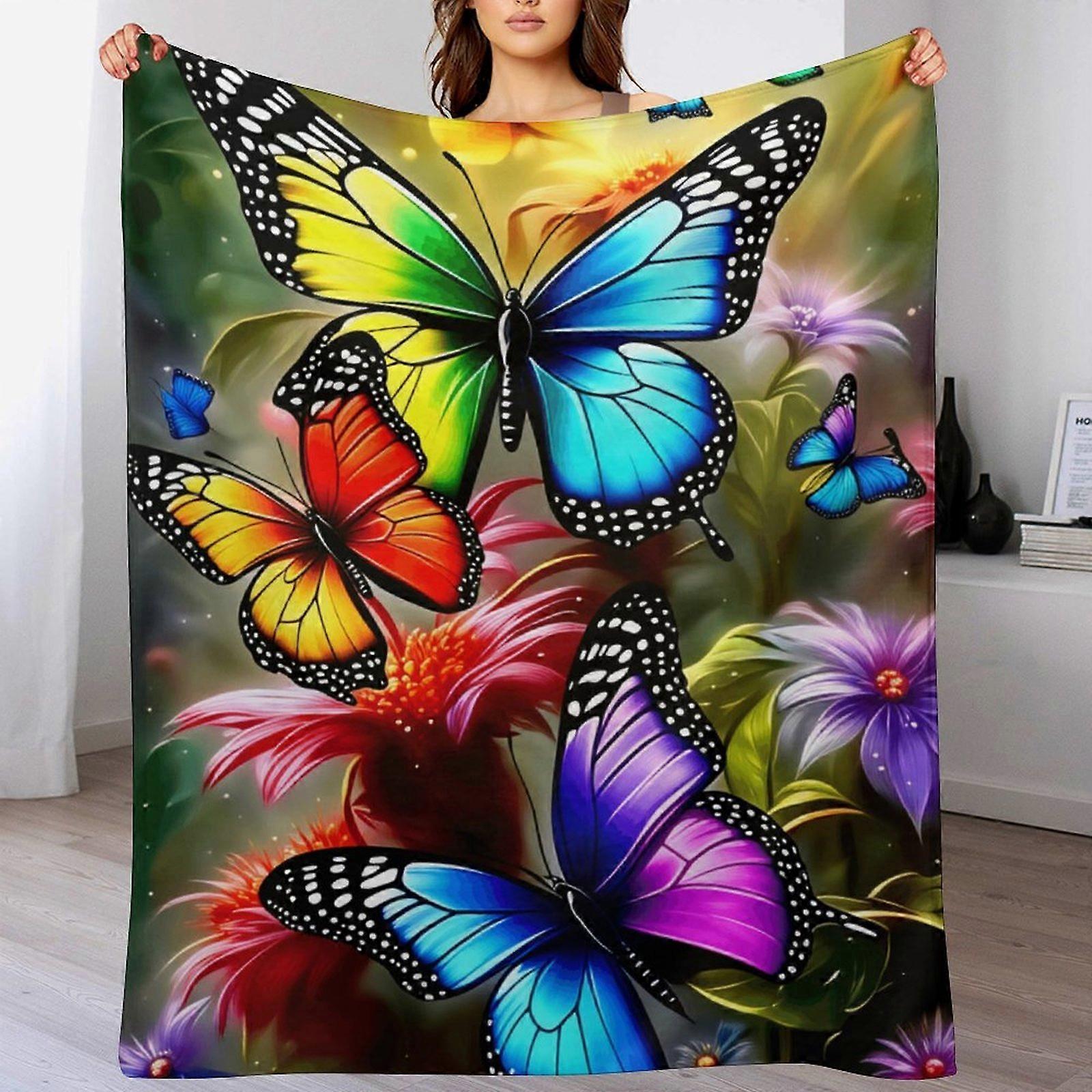 Colorful Butterfly & Flower Print Flannel Blanket - Soft Warm Throw for Bedroom | Whimsical Decor for Nature Lovers