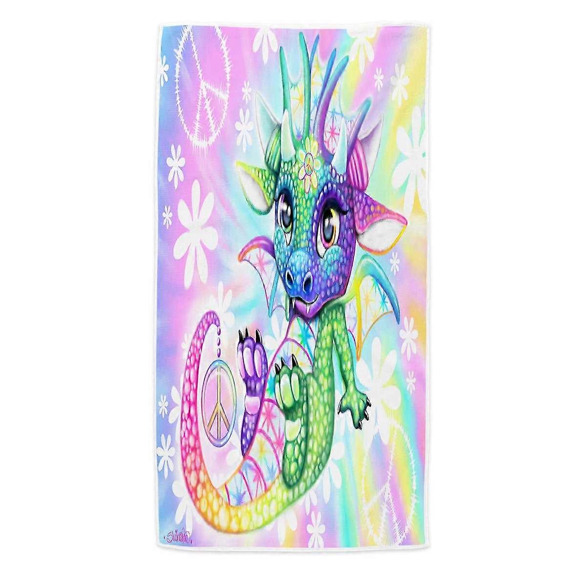 Colorful Cute Peaceful Tie Dye Lil Dragon Microfiber Beach Towel